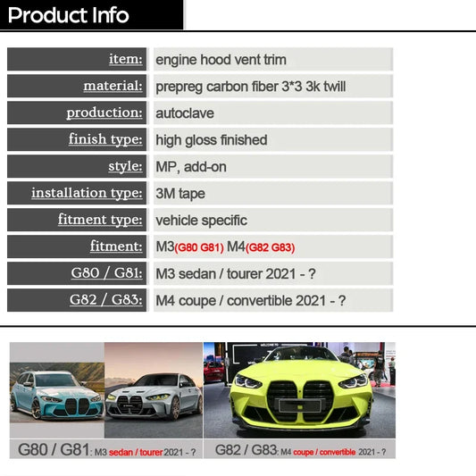 Carbon Fiber Front Engine Hood Decorational Vent Trim Moulding Left & Right for BMW 2021+ M3 G80 M4 G82 G83