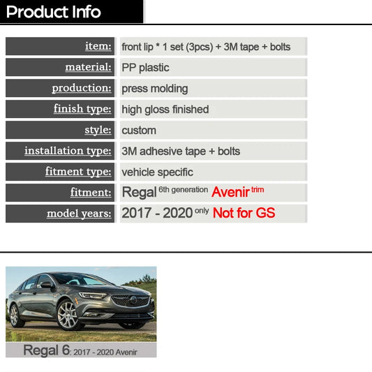 Carbon Fiber Front Bumper Lip Spoiler 3PC for Buick Regal 6th 2017 - 2020 Avenir for Opel Vauxhall Insignia for Holden Commodore