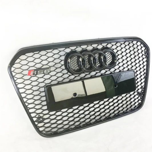 Front Bumper Grille Honeycomb Mesh Grills for Audi RS6 Grill A6 A6L Modification to RS6 2013-2015 with Emblem Car Accessories