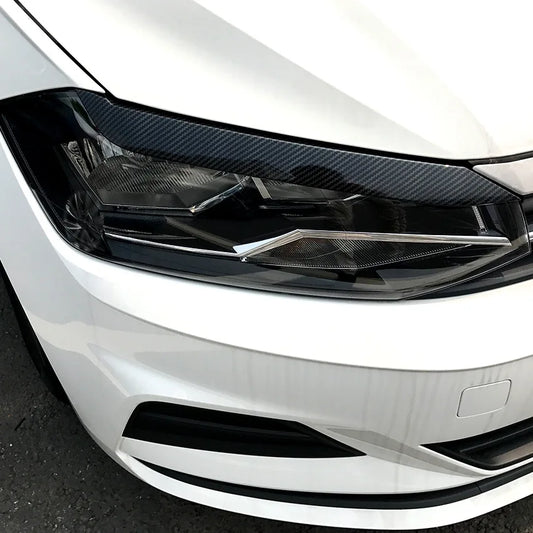 Gloss Black Headlights Eyebrow Eyelids Chrome Trim Sticker for Volkswagen VW Polo MK6 2019+ Carbon Fiber Accessories Car Styling