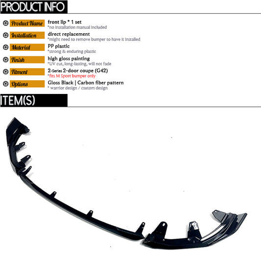 Gloss Black Rear Bumper Spoiler Quad Diffuser for 2022 - 2024 BMW 2 Series G42 Coupe 2-Door M Sport 218i 220i 230i M240i 220d