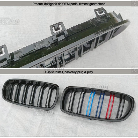 Gloss M Tri-Colour Front Bumper Kidney Radiator Grille for BMW 2012 - 2018 F30 3-series Sedan, F31 Estate (Not Fit for M3)