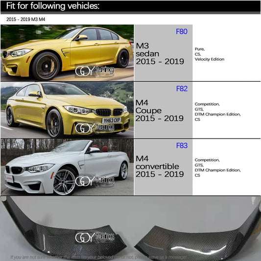 3*3 3K Carbon Fiber Front Bumper Splitter Canards 1 Pair for BMW F80 M3 F82 F83 M4 CS Competition 2015 - 2019