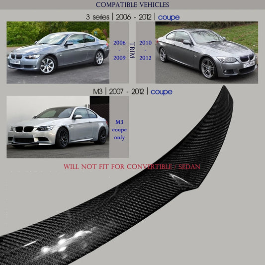 3*3 Carbon Fiber Rear Trunk Spoiler Boot Wing Ducktail Perfectly Fit for BMW 3 Series Coupe (E92) & M3 Coupe 2006 - 2012