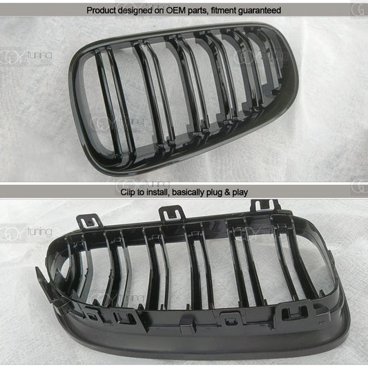 Gloss Black Dual-Slat Front Bumper Kidney Radiator Grille for BMW 2009 - 2012 E92 3 Series Coupe, E93 Convertible (Not for M3)