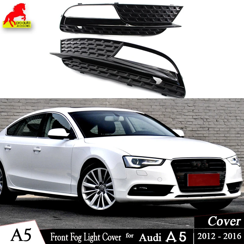 2 Pcs Front Bumper Fog Light Lower Grille Front Fog Light Cover Replacement for AUDI A5 2012-2016 Glossy Black Car Accessories