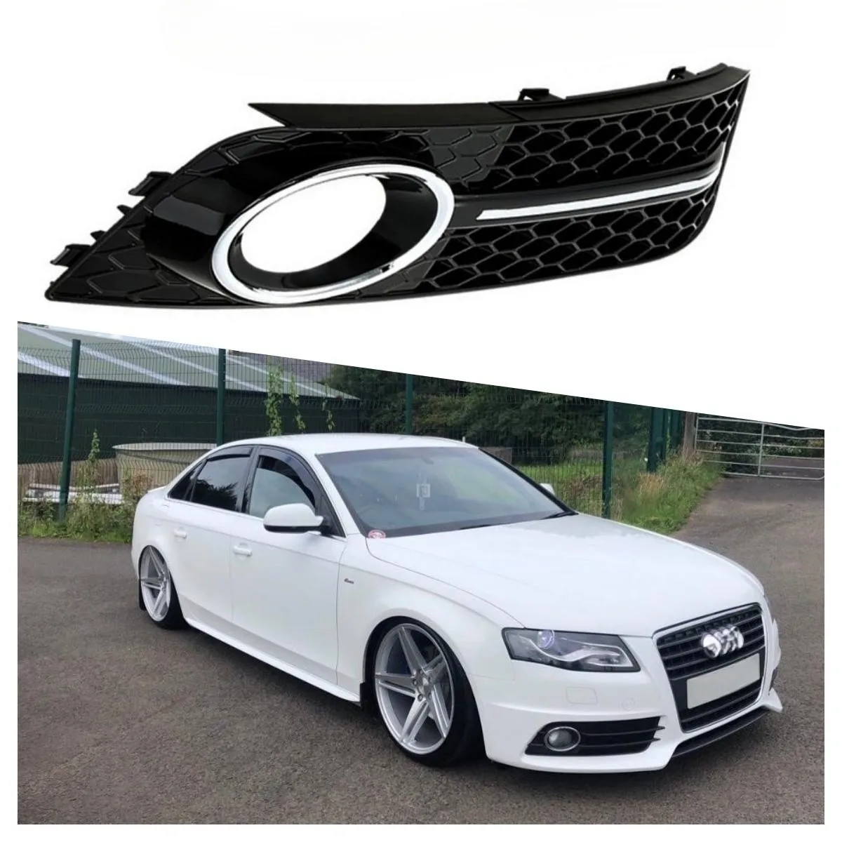 2 Pcs Honeycomb Mesh Front Fog Light Trim Frame Fog Lamp Grille Cover for Audi A4 B8 Retrofitting S4 2009-2012 Black Accessories