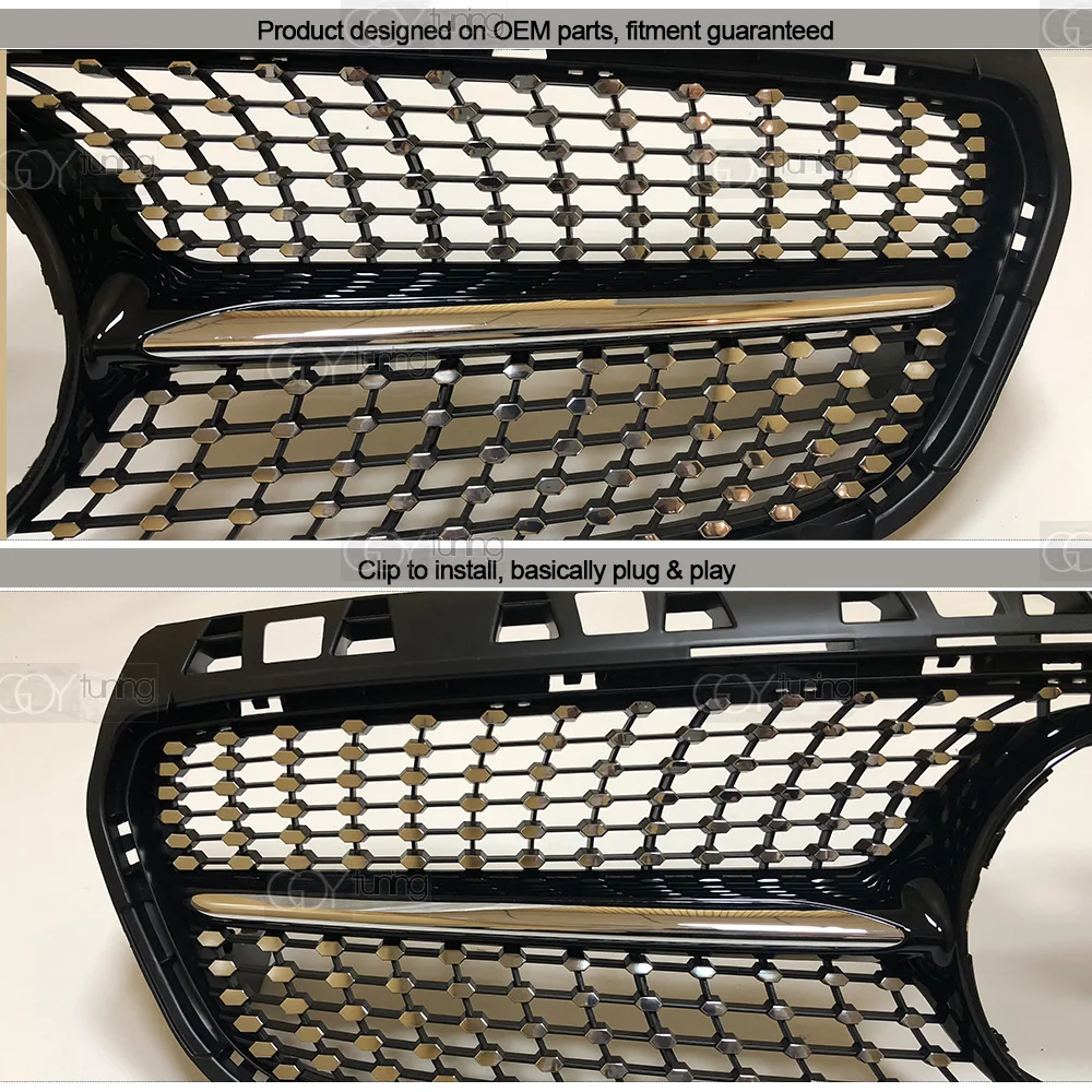 ABS Black Silver Replacement Front Bumper Radiator Diamonds Grille Fit For Mercedes A Class W176 2013 - 2015