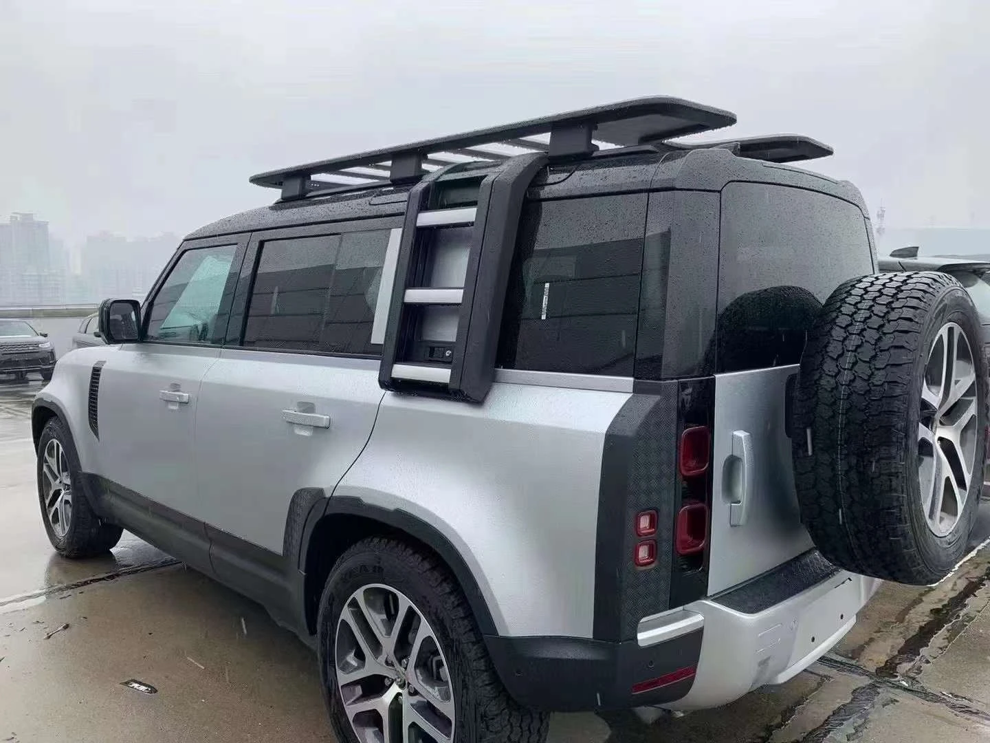 Black Silver Car Ladder Roof Racks & Boxes Foldable for Land Rover Defender 110 90 Side Climbing Ladders Bodyguard Accessories