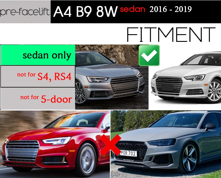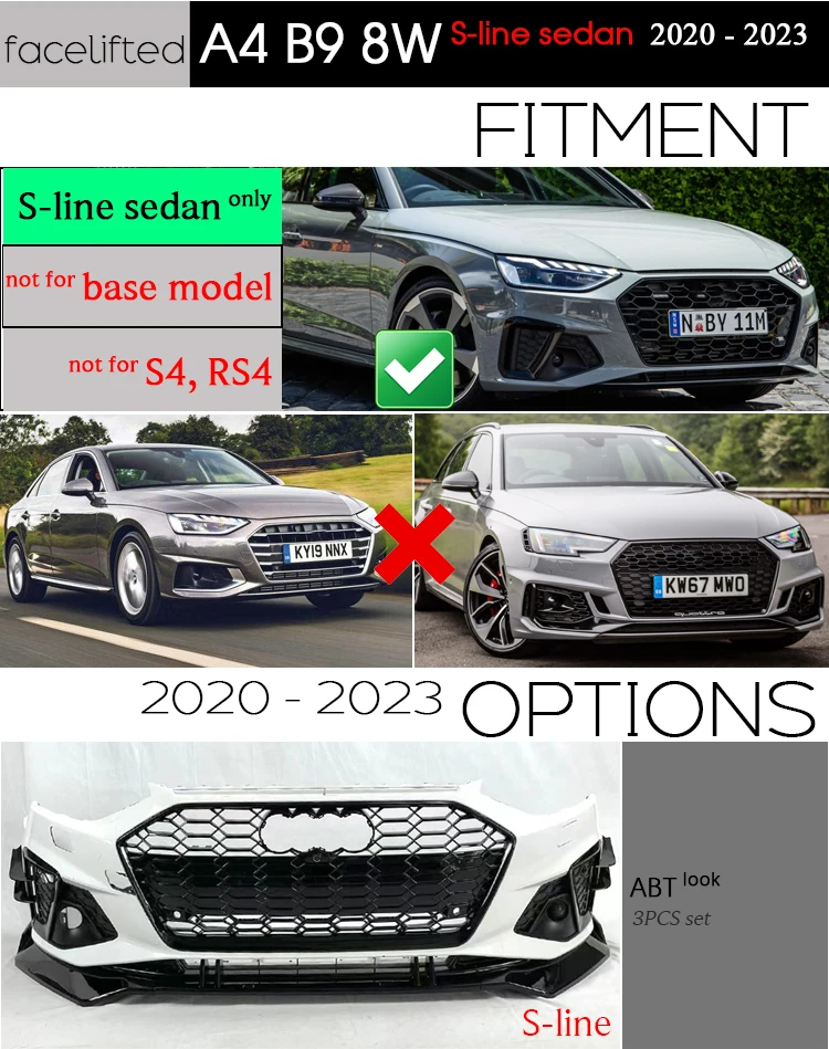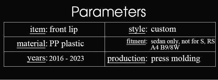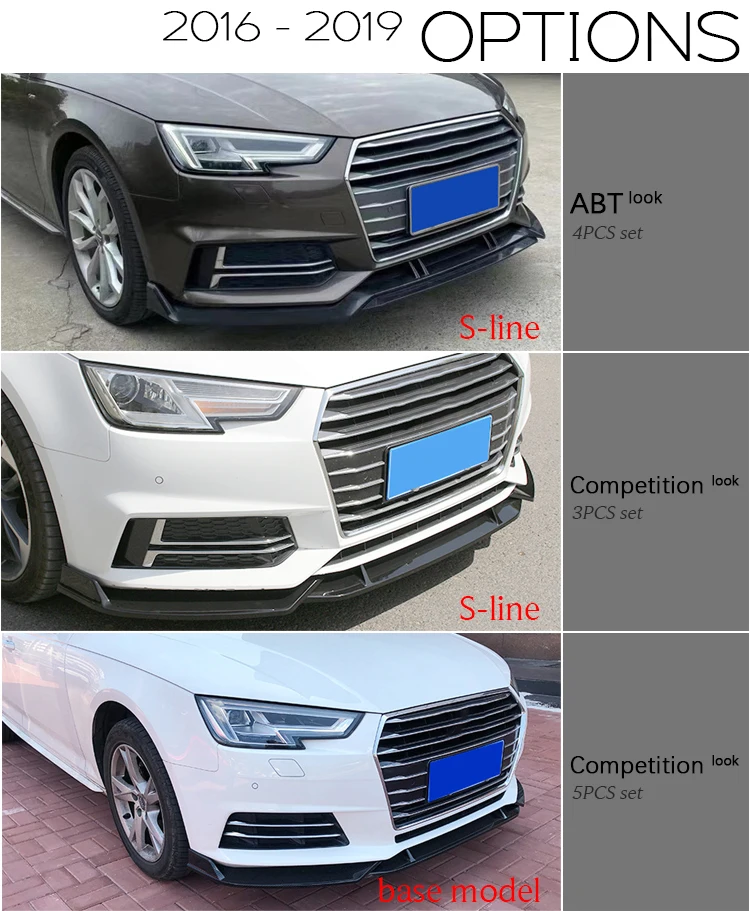 Carbon Fiber Print Gloss Black Front Bumper Lip Spoiler for Audi A4 B9 B9.5 8W 2016 - 2020 S-line Sedan (Not for 5-door/S4/RS4)
