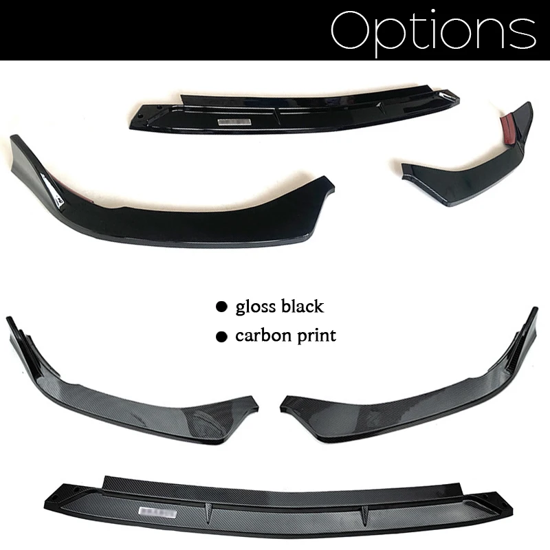 Carbon Fiber Print & Gloss Black Front Bumper Spoiler Splitter Lips 3PCS for Mercedes C Class W206 S206 AMG Package 2021 - 2023