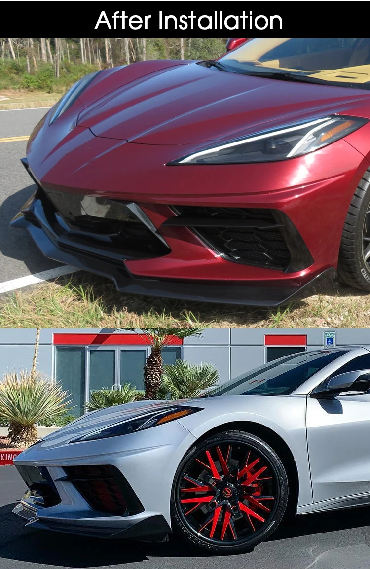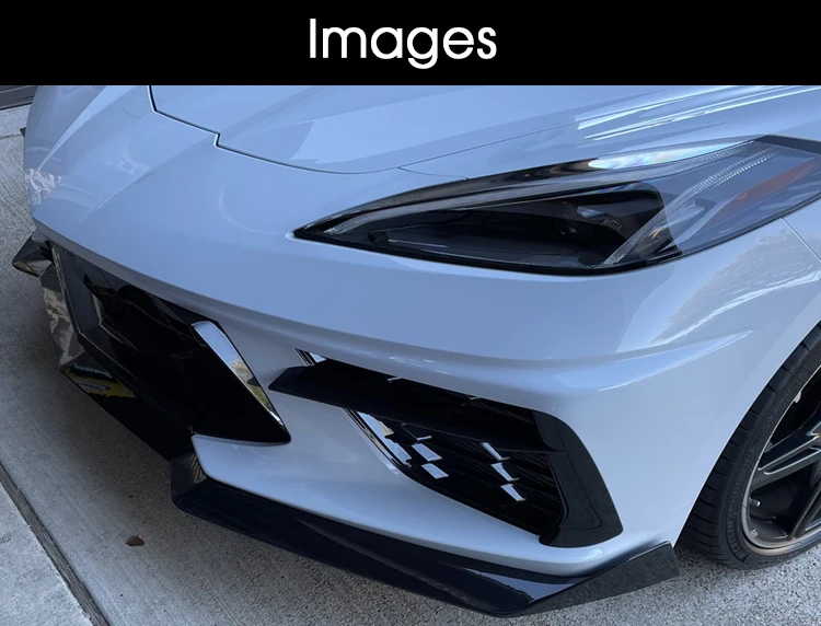 Carbon Fiber Printing Glazing Black Front Bumper Chin Spoiler Lower front Lip & Splitters for Chevrolet Corvette C8 2020 - ?