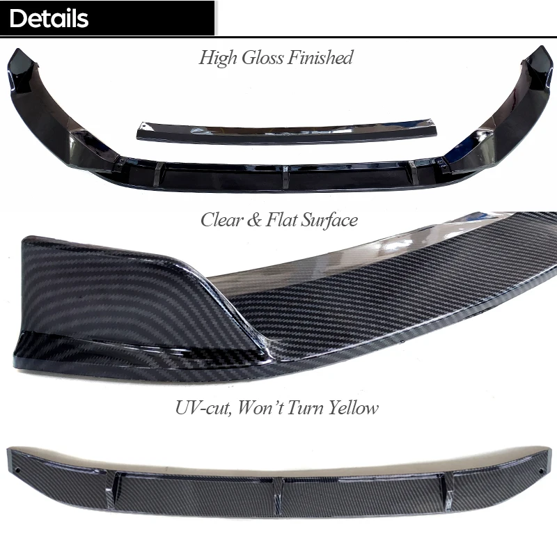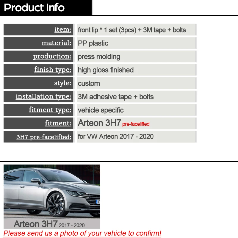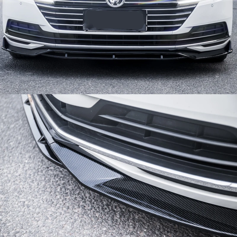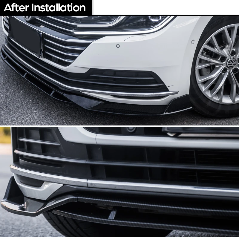 Carbon Fiber Printing Gloss Black Front Bumper Lip Spoiler 4PCS for Volkswagen VW New CC Arteon 3H7 Pre-facelifted 2017 - 2019