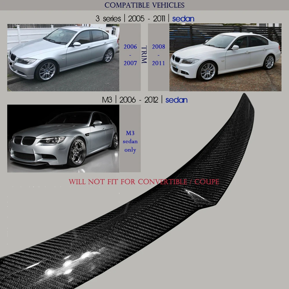 Carbon Fiber Rear Trunk Spoiler Deck Lid Duck Wing for BMW 3 Series 4-Door Sedan (E90) & M3 Sedan 2005 - 2011, Perfect Fitment