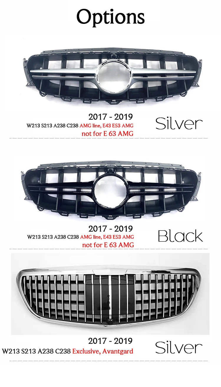 E63 Style Front Radiator Grille fit for 2017 - 2019 Mercedes E Class Pre-facelifted W213 S213 C238 A238 E200 E300 E350 E400 E43