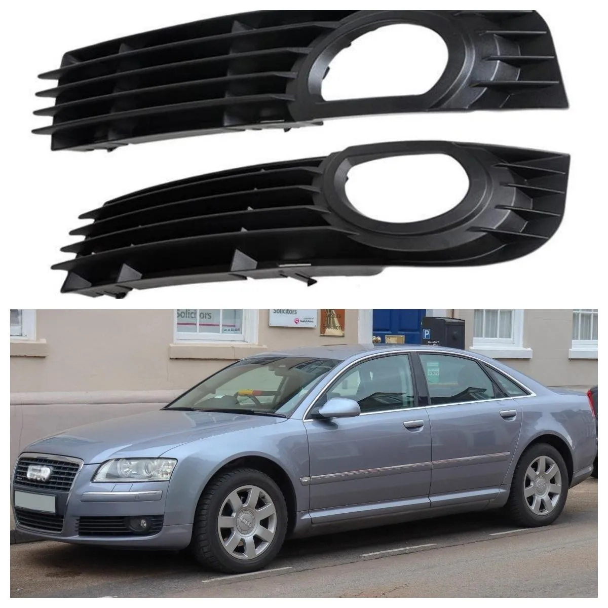 Front Bumper Fog Light Grill Cover Black Fog Lamp Grille Frame Replacement for Audi A8 (D3) 2005 2006 2007 Plastic Car Styling