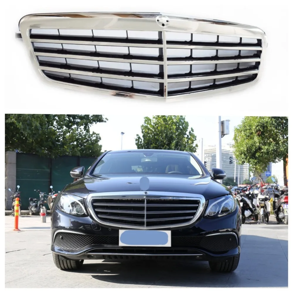 Front Bumper Grille Silver Grill for Mercedes Benz E Class W212 E200L Old Style Three Horizontal Model Styling Car Accessories