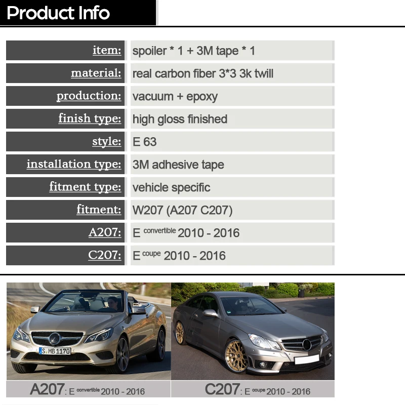 Real Carbon Fiber Trunk Spoiler for Mercedes E Class A207 C207 W207 2-Door Coupe 2010 - 2016 E200 E220 E250 E300 E350 E400 E500